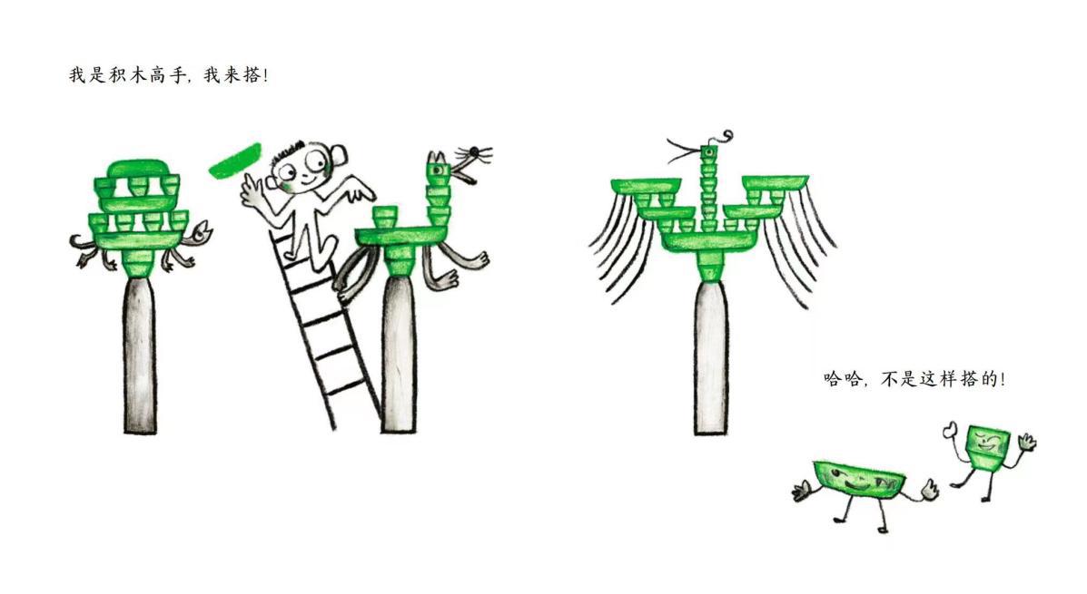 兒童蠟筆涂鴉式的拙趣畫風(fēng),配合生動(dòng)鮮活、天真質(zhì)樸的畫面,處處透著童真,更加符合孩子的審美趣味。透過(guò)簡(jiǎn)單童趣的意象,孩子可以展開更多天馬行空的想象,給創(chuàng)新創(chuàng)造能力插上自由的翅膀。