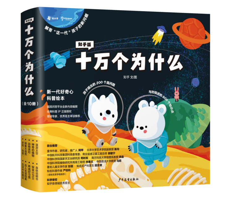 不是所有的科普讀物,都能叫《十萬個為什么》。1961年至今,《十萬個為什么》累計發(fā)行量近2億冊,是至今仍未被超越的現(xiàn)象級科普圖書。這套書在普及和傳播科學知識方面,發(fā)揮了非常積極的作用,影響了中國幾代青少年,堪稱是新中國影響力最大的青少年科學啟蒙讀物。作為國民級科普經(jīng)典,《十萬個為什么》誕生至今已經(jīng)60多年。盡管已經(jīng)有了之前版本的《十萬個為什么》,但是時代是不斷進步的,特別是進入數(shù)碼時代以后,孩子們比以往的所有時代,擁有著更多的信息和知識,腦袋瓜里也萌發(fā)著更新的問題和疑惑。他們發(fā)出的越來越多“超綱”問題,是以前的課本、科普書上沒有的,也讓父母們經(jīng)常面對“不知如何作答”的情況。新的“為什么”,需要新的解答。在少兒經(jīng)典科普《十萬個為什么》出版60周年之際,知乎攜手上海少年兒童出版社,收集當代孩子的真問題,邀請各領(lǐng)域機構(gòu)和專家為孩子們寫下新答案,推出了全新的知乎版《十萬個為什么》,盡量讓孩子們的問題都有答案。