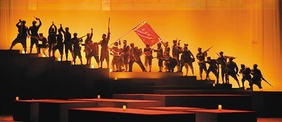 類似這樣耐人尋味、畫龍點(diǎn)睛的改編還有許多,比如原著中的“小彭”變成了“小火柴”,代表了點(diǎn)燃的微火和一種希望;“答答滴滴滴,滴滴滴答答”不僅是符號化的電碼,而且成為了最好的祝福,一句臺詞蘊(yùn)含多層含義,滿含深情。從“最后的電波”到“鐵流東進(jìn)”,更展現(xiàn)了一種大歷史觀、大時(shí)代觀,真正符合立體的舞臺呈現(xiàn)。