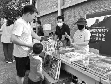 中關(guān)村圖書大廈攜手西郊機(jī)場居民委員會走進(jìn)西郊機(jī)場家屬區(qū),開展“八一建軍節(jié) 品書香文化”主題宣傳活動。