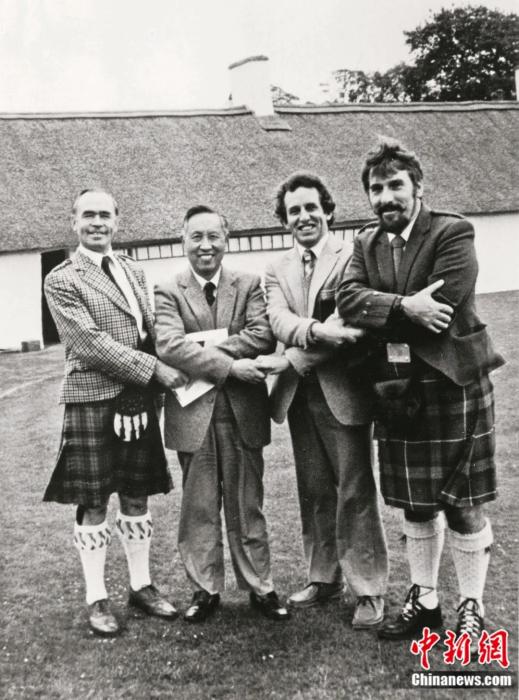 1982年7月,王佐良(左二)在蘇格蘭詩人彭斯的故鄉(xiāng)歐文城。王佐良是最早譯介彭斯的譯者之一。中新社發(fā) 受訪者供圖