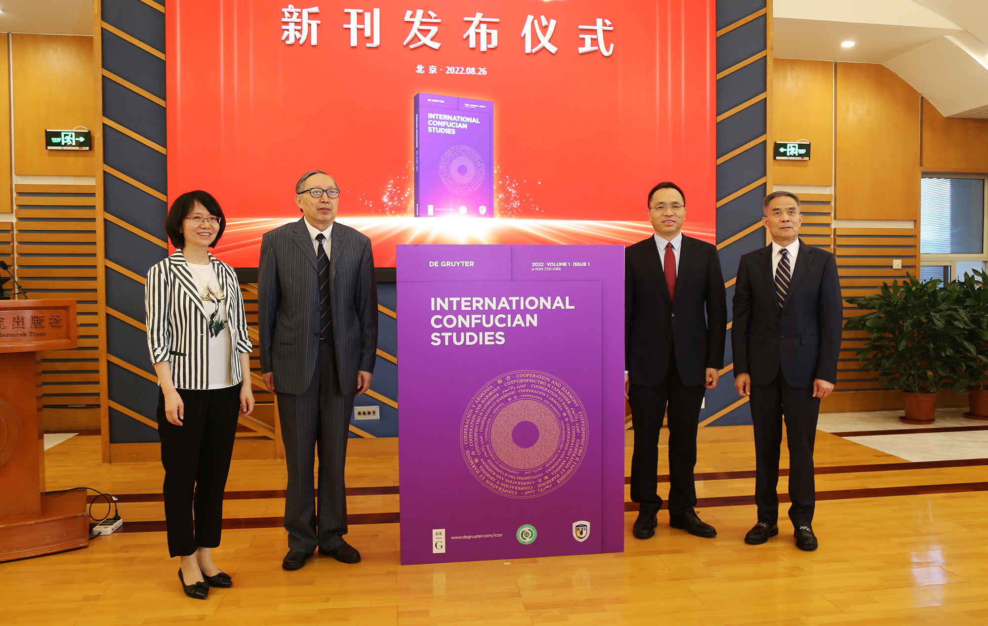 陳睿、陳來、楊丹、賈德永共同為《國際儒學(xué)》(英文版)新刊揭幕。(從左至右)