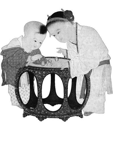 秉燭夜游是大人的游戲,那么古代的孩子玩什么呢?《陪孩子看中國(guó)畫》專門介紹了以兒童游戲?yàn)橹黝}的圖畫,其中《秋庭戲嬰圖》是宋代描寫童心的經(jīng)典畫作,刻畫了姐弟倆玩推棗磨的游戲。棗磨的制作原料非常簡(jiǎn)單,由三顆鮮棗、三根短棍和一根長(zhǎng)棍組成。這是古代北方秋天棗子成熟之后,孩子們經(jīng)常玩的一種自制玩具。孩子身后還有很多其他商業(yè)制作的玩具,但姐弟倆卻專注玩著自制的玩具。田玉彬感慨:“姐弟倆專注欣悅地玩推棗磨,而把一堆商品玩具丟在身后,這看似無(wú)意的對(duì)比想來(lái)是出于畫家的精心安排,他或許是想說(shuō)童心并不在乎精巧華貴,而在乎清新純潔。”