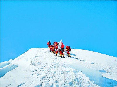 珠峰是地球的驕傲,人類探險精神和探索精神的制高點與交匯處。登頂珠峰,是人體內(nèi)冒險因子的永恒主題,是人類挑戰(zhàn)自身、挑戰(zhàn)極限、創(chuàng)新紀(jì)錄的不朽篇章。一次又一次登頂珠峰的背后,顯示人性中更多的征服欲和榮譽感,凸現(xiàn)難以用言語表達的從肉體到思想,甚至到生命的付出。