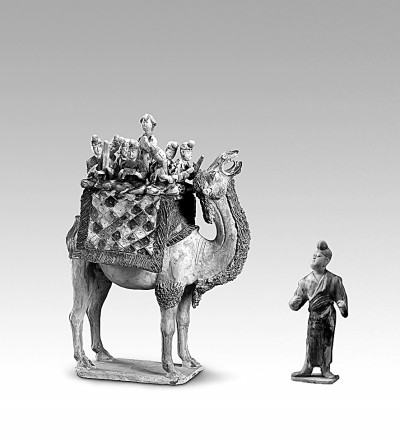 三彩載樂(lè)駱駝及牽駝俑(唐代),1959年西安中堡村唐墓出土。圖片選自《國(guó)寶中的黃河文明》