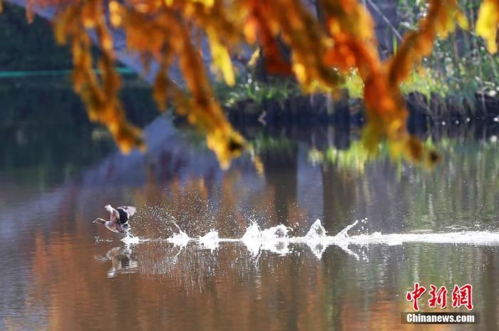 資料圖:南京燕雀湖景致。燕雀湖位于南京紫金山梅花谷南側(cè),種植大量落羽杉、池杉、水杉等色葉樹(shù)種,每到初冬時(shí)節(jié),湖畔風(fēng)景如畫(huà)。 中新社記者 泱波 攝