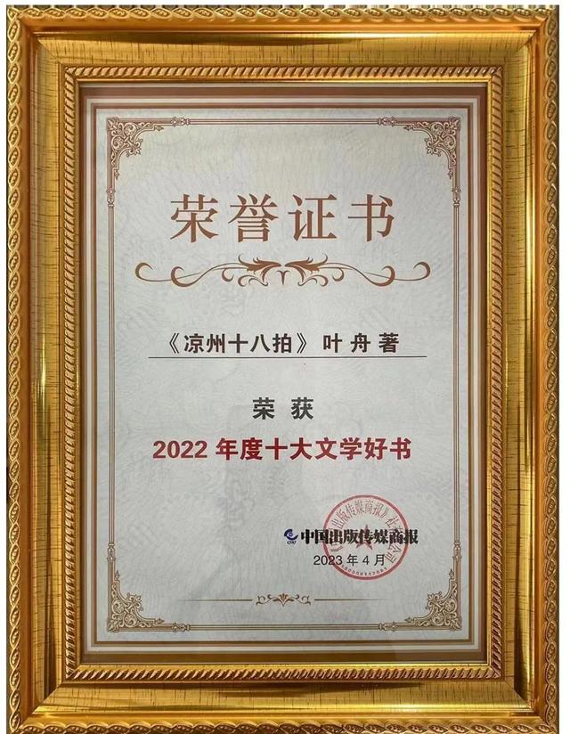 第十一屆春風(fēng)悅讀榜年度頒獎(jiǎng)典禮4月22日在浙江杭州舉辦,著名作家葉舟長(zhǎng)篇小說《涼州十八拍》榮獲白銀獎(jiǎng)。此外,4月21日由中國(guó)書刊發(fā)行業(yè)協(xié)會(huì)、中國(guó)新華書店協(xié)會(huì)、韜奮基金會(huì)等聯(lián)合發(fā)起的第十屆讀友讀品節(jié)上,《涼州十八拍》入選2022年度十大文學(xué)好書。