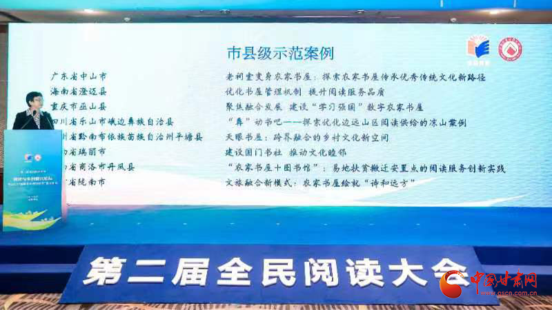 中國甘肅網(wǎng)4月25日訊 日前,第二屆全民閱讀大會(huì)·閱讀與鄉(xiāng)村振興論壇暨2023“新時(shí)代鄉(xiāng)村閱讀季”啟動(dòng)儀式在浙江杭州舉辦。論壇發(fā)布了在全國遴選出的30個(gè)農(nóng)家書屋創(chuàng)新示范案例、50位“鄉(xiāng)村閱讀推廣人”和198個(gè)“最美農(nóng)家書屋”入選名單,集中展示了近年來各地推動(dòng)農(nóng)家書屋提質(zhì)增效的生動(dòng)實(shí)踐和創(chuàng)新成果,涌現(xiàn)出來的鄉(xiāng)村閱讀推廣示范人物和最美書屋,為探索新時(shí)代鄉(xiāng)村閱讀發(fā)展路徑提供了重要借鑒。