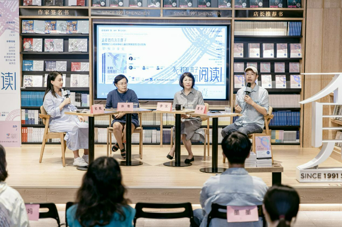 分享會上,閱讀公益組織“愛閱公益基金會”的李文、兒童有聲書品牌“老墨家族”的“墨叔叔”、學習困難關愛協會“學愛會”許倩、讀困家長社群“飛米力”(本書翻譯團隊)主理人鄭楓,四位嘉賓,帶著各自不同的成長和行業(yè)經歷背景,圍繞“不一樣的孩子,不一樣的閱讀”的主題展開交流,從不同的角度表達了他們對于閱讀障礙的關切。