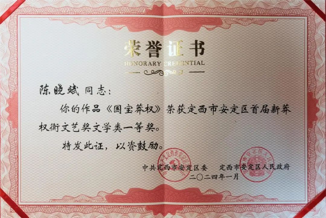 1月21日晚,由定西市安定區(qū)委、區(qū)政府主辦的首屆“新莽權(quán)衡文藝獎”頒獎晚會在隴中許鐵堂秦腔劇院隆重舉行。讀者出版社紀實文學(xué)作品《國寶莽權(quán)》榮獲文學(xué)類一等獎。