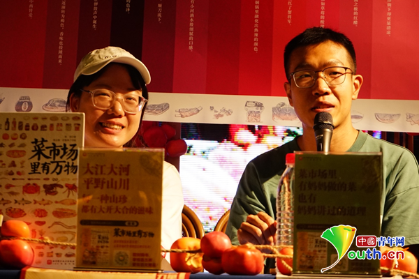 中國(guó)青年網(wǎng)北京5月23日電(記者 張?jiān)姮摚┪逶率谴合慕惶娴臅r(shí)節(jié),也是菜市場(chǎng)里瓜果蔬菜交替爭(zhēng)“鮮”的時(shí)節(jié)。八方食客來到菜市場(chǎng)里,尋找盤中餐里的風(fēng)味。近日,北京科學(xué)技術(shù)出版社在蘇州雙塔市集舉辦了“菜市場(chǎng)”主題活動(dòng),并邀請(qǐng)到了《菜市場(chǎng)里有萬(wàn)物》一書的作者陳瑤以及生活類播客節(jié)目《呼叫仙貝》的主播張老師來到現(xiàn)場(chǎng),分享他們的“菜場(chǎng)經(jīng)”。