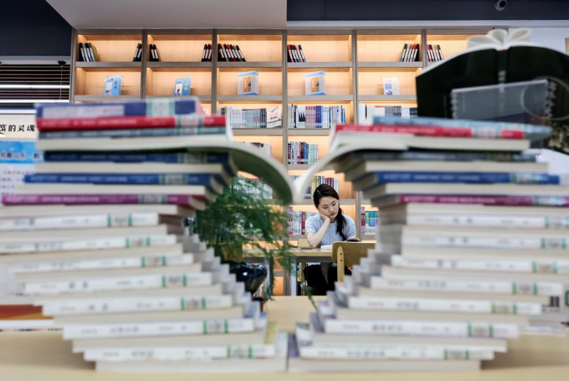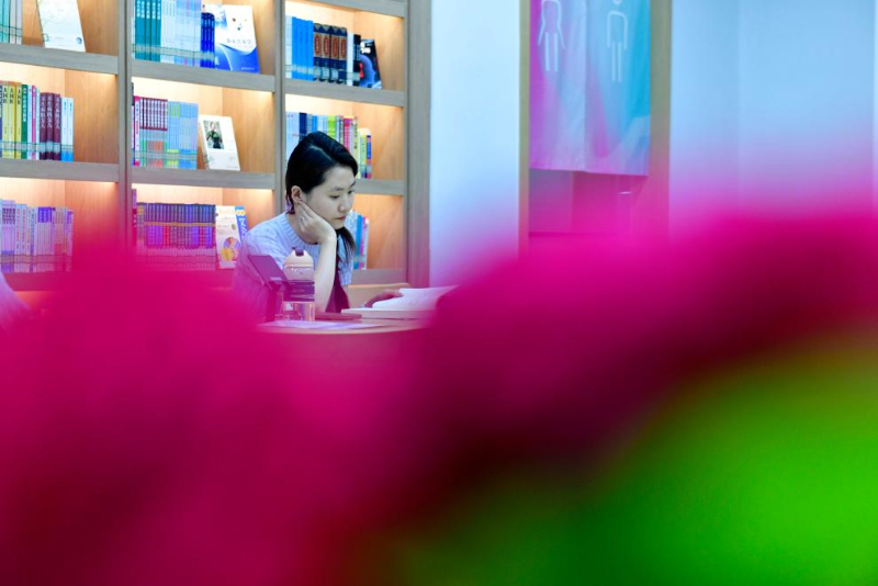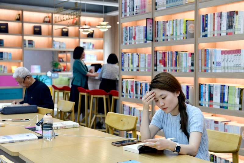 5月23日,讀者在日照市東港區(qū)城市書房櫻花園館閱讀。