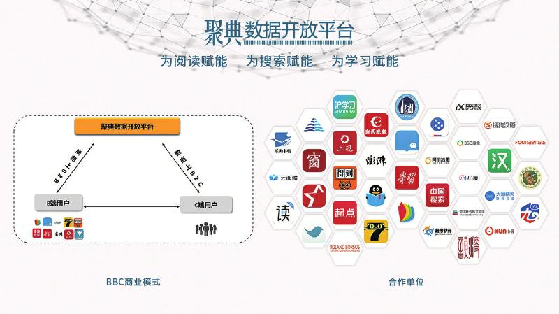 以我為主,推動產(chǎn)業(yè)鏈和生態(tài)圈的協(xié)同共進。與以往數(shù)字出版平臺大都采用B2B、B2C等商業(yè)模式不同,聚典平臺采取的是BBC運營模式,即在商務流上是B2B模式,而在數(shù)據(jù)流上是B2C模式。該模式很好地解決了用戶在數(shù)字閱讀過程中的痛點,同時又很好地平衡了各方利益,C端用戶無需付費便可享受聚典平臺的優(yōu)質(zhì)內(nèi)容資源服務,B端客戶向平臺付費以獲得增值服務,在增加其產(chǎn)品用戶黏性的同時,也減輕了自身的數(shù)據(jù)加工和技術開發(fā)工作。聚典平臺不僅在總體上創(chuàng)造出增量價值,更通過制度的設計很好地平衡了增量價值的合理分配,讓各方都分享到其中的一部分,從而調(diào)動了各方的參與性和積極性。