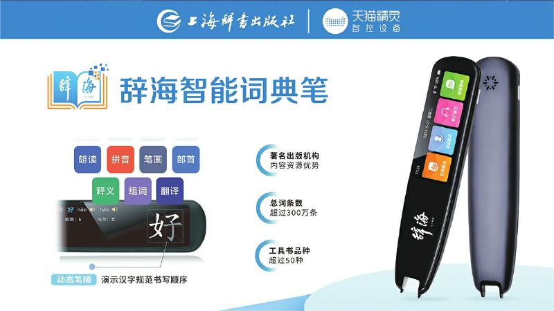 為了更好地適應用戶在紙質(zhì)閱讀過程中的快速查檢需求,辭書社經(jīng)過數(shù)年設計研發(fā),于2022年9月推出辭海智能詞典筆。詞典筆充分依托聚典平臺積累的海量內(nèi)容資源,將1.6億字裝進一支詞典筆,內(nèi)置詞條達到了300余萬條,收錄了《辭海》(第七版)和《大辭?!贰稘h語大詞典》《英漢大詞典》《世紀漢英大詞典》等國家級標志性工具書,整合《現(xiàn)代漢語大詞典》《現(xiàn)代漢語規(guī)范詞典》《中國成語大辭典》《同義詞、反義詞大詞典》等精品工具書,讓用戶每次都能夠查有所得。同時,詞典筆實現(xiàn)掃讀結果1秒呈現(xiàn),并融合數(shù)字智能技術,集掃描查詢、語音助手、聽力練習、語音翻譯、口語測評、數(shù)碼錄音、生詞本、文本摘抄等八大功能于一體,實現(xiàn)一筆多用。