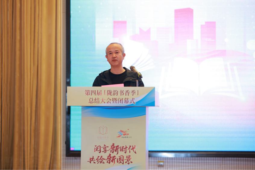 肖學(xué)智館長(zhǎng)回顧并總結(jié)了第四屆“隴韻書香季”舉辦的概況和取得的成效。他表示,“今年‘隴韻書香季’期間,我們聯(lián)動(dòng)全省多家圖書館,開展了30大項(xiàng)共百余場(chǎng)閱讀推廣活動(dòng),并將部分重點(diǎn)活動(dòng)帶向基層圖書館,擴(kuò)大書香季‘朋友圈’,共謀‘大家’發(fā)展;今年,我們更加重視品牌宣傳,借助社會(huì)名家、網(wǎng)絡(luò)達(dá)人的力量,喜提多個(gè)‘熱點(diǎn)’和‘熱搜’;今年,隴韻書香季系列活動(dòng)榮獲多個(gè)獎(jiǎng)項(xiàng),讓我們?cè)诠膭?lì)與肯定中堅(jiān)定信心。未來我們將繼續(xù)與各兄弟單位、媒體、全省讀者朋友們攜手前行,用高質(zhì)量的閱讀推廣發(fā)展成果助力“書香隴原”建設(shè)。”