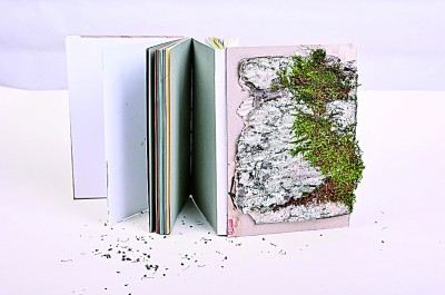 值得一提的是,上述書籍中有許多僅容納了少量文字信息,甚至完全脫離了文本的限制,藝術(shù)家僅借“書”的形式與面貌來傳遞自己的所思所感。這類作品既是書籍,也可看作獨(dú)立的藝術(shù)裝置,呈現(xiàn)出書籍裝幀與其他藝術(shù)門類相互融合的發(fā)展趨勢(shì)。