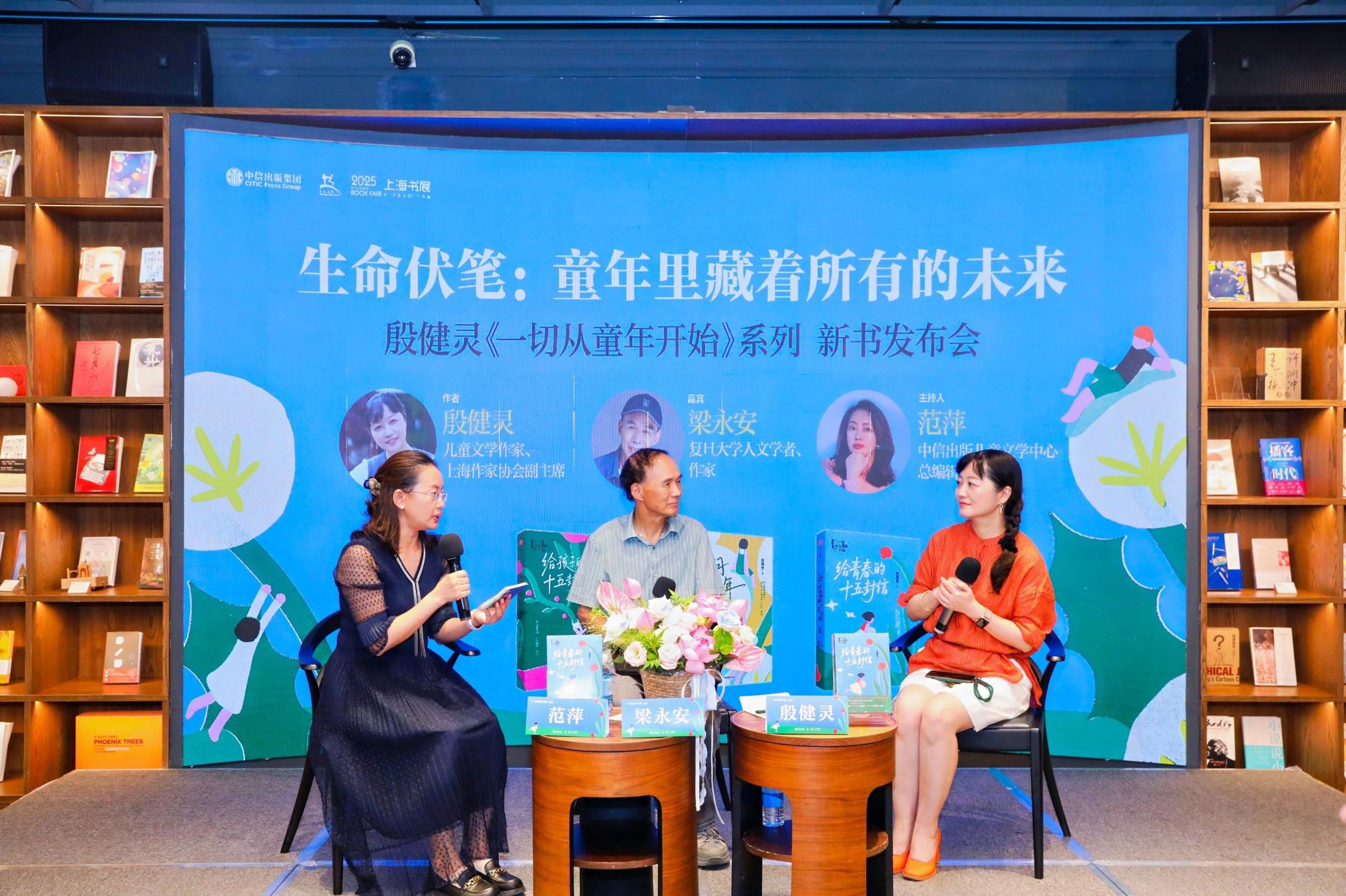 中國(guó)青年報(bào)客戶端訊(中青報(bào)·中青網(wǎng)記者 李丹萍)8月15日,在2025上海書展期間,著名兒童文學(xué)作家、“成長(zhǎng)擺渡人”殷健靈攜《一切從童年開(kāi)始》系列新書與讀者見(jiàn)面。本次活動(dòng)以“生命伏筆:童年里藏著所有的未來(lái)”為主題,由中信出版集團(tuán)聯(lián)合上海書展舉辦,特邀復(fù)旦大學(xué)人文學(xué)者、作家梁永安作為對(duì)話嘉賓,和殷健靈共同開(kāi)啟一場(chǎng)文學(xué)與思想的碰撞。
