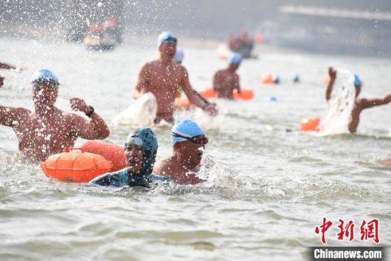 中新網(wǎng)蘭州1月1日電 (閆姣 楊艷敏)新年伊始,黃河蘭州段清粼似海,來自北京、成都、內(nèi)蒙古、甘肅多地的300多名冬泳愛好者或“橫渡黃河”或“漂游而下”,倡導(dǎo)健康生活。