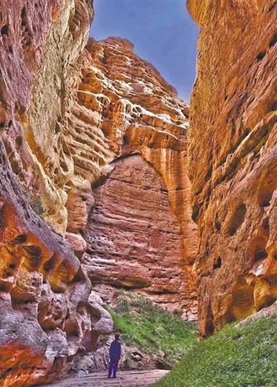 在“云直播”中,蒙古族姑娘有過這樣的描述:平山湖大峽谷海拔高度1500至2550米,其地質(zhì)構(gòu)造屬于紅層地貌,是中生代侏羅紀(jì)至新生代第三紀(jì)沉積形成的“紅色沙礫巖”,距今已有一億八百萬年至兩億四千萬年。大峽谷從谷底到頂部分布著從寒武紀(jì)到新生代各個時期的巖層,層次清晰,色調(diào)各異,并且含有各個地質(zhì)年代的代表性生物化石,又被稱為“活的地質(zhì)史教科書”。