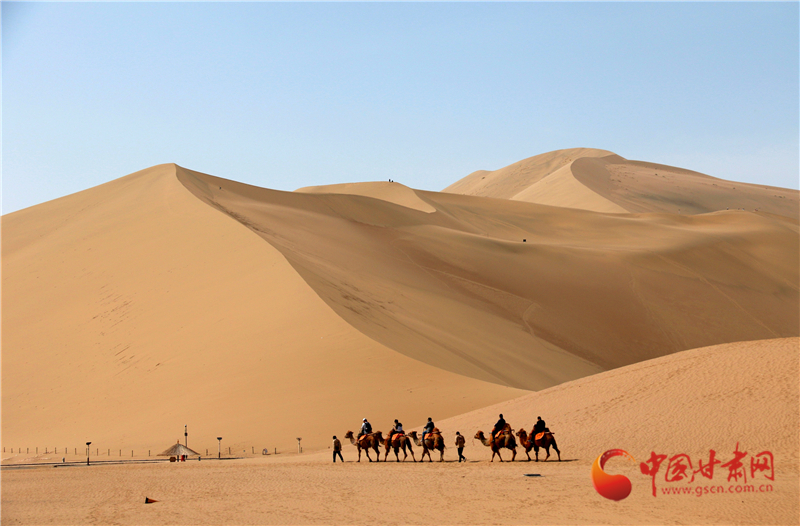 5月19日是中國(guó)旅游日,游客來(lái)到甘肅省敦煌市鳴沙山月牙泉景區(qū),欣賞大漠壯美風(fēng)光,體驗(yàn)獨(dú)特絲路風(fēng)情。