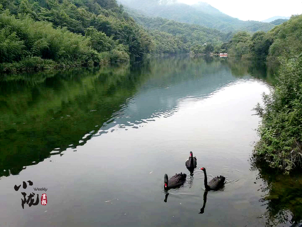 天鵝湖,湖波瀲滟,群山倒映。湖對面遠處是一片處處竹林,郁郁蔥蔥。當游弋在湖面上的三只黑天鵝,映入眼簾時,感覺此景更像一副渾然天成的水墨畫,湖邊是大片的草地,造型奇特的古樹名木參差錯落,石桌與石凳散落其間,靜謐和諧,看書、聊天、放松均是不錯的選擇。