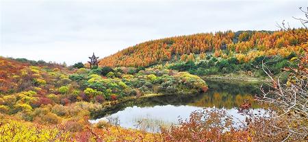 這里一年四季皆有值得欣賞的美景,可謂一時(shí)一景。春夏時(shí)節(jié),桃木山一帶草木蔥蘢,峰嶺翠嶂,前、后兩湫在一望蔚然的萬千丘壑中辟出兩點(diǎn)平闊明凈的幽境,像不惹凡塵的仙女隱在人跡不到處,任群山映襯著清靈俊秀的模樣,吐納著關(guān)山深處的空靈氣息。其前湫水深波靜,不能見底,水草飄搖,游魚雜出,水面倒映著四岸草木和亭臺曲欄,岸邊偶有漁人垂釣或游客輕歌,一派清幽韻致。后湫水淺色深,人工砌成的蓮花臺處于密藻之中,水邊泉眼密布,形成陰濕滲水帶,西側(cè)與北坡各有一座寺院,白墻金頂隱在一片蔥蘢之中,點(diǎn)綴成趣。每到初夏,后湫北坡般若寺周圍遍開一種白色野花,因必為兩朵連枝并開,人們稱其姊妹花。此時(shí)遠(yuǎn)望近觀,可見花濃成勢,純潔芬芳,自成一景。若在清晨或雨后,云霧彌漫山間,湫池的青白水面在渺渺煙雨中依稀顯隱,變幻不定,斯山斯水頓如仙界。