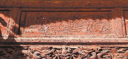 會(huì)館正殿東西兩側(cè),各有一個(gè)小別院,幽靜一隅,別有洞天。別院門樓整體為磚雕裝飾,邊墻墻面各用一塊保存完好的磚雕裝飾。東別院磚雕為:“祥龍吐瑞”,也意左青龍。