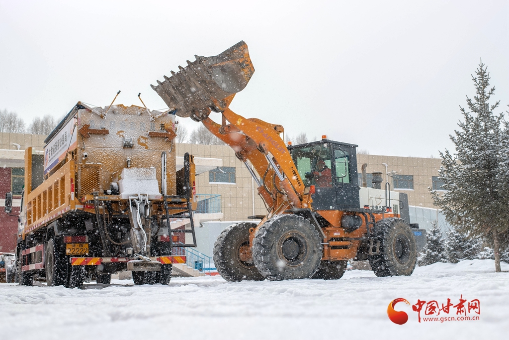 12月12日,甘肅省張掖公路局除雪車輛在國道227線進行除雪作業(yè)。