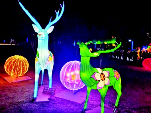 花燈競(jìng)起,五夜齊開(kāi)。連日來(lái),市區(qū)金嶺公園夜晚流光溢彩,一組組色彩艷麗、造型精美、構(gòu)思巧妙、寓意吉祥的大型花燈將公園裝扮得五彩繽紛、喜氣洋洋。燈的海洋,夜的霓裳,造型各異的花燈惹人注目,吸引了眾多市民前來(lái)觀賞,也給即將到來(lái)的元宵佳節(jié)帶來(lái)濃濃的喜慶氣氛。