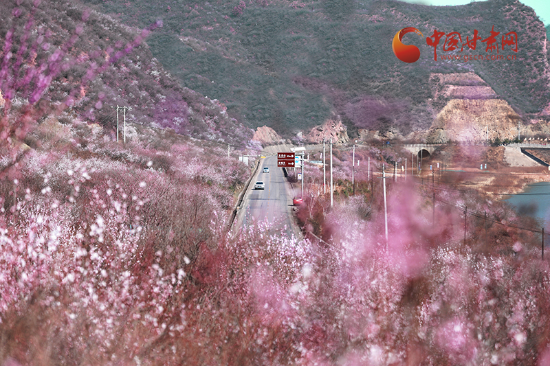 在五龍山,漫山桃花競相開放,香氣襲人,匯成了花的海洋,粉紅的桃花在春風(fēng)里綻放,在春日的陽光下煞是好看,遠(yuǎn)遠(yuǎn)望去粉的嬌柔婀娜,層層疊疊,瓣瓣舒展。一列火車疾馳而過,滿眼的美景吸引過往游客駐足拍照留念,感受大自然給予這座小城的美好饋贈。