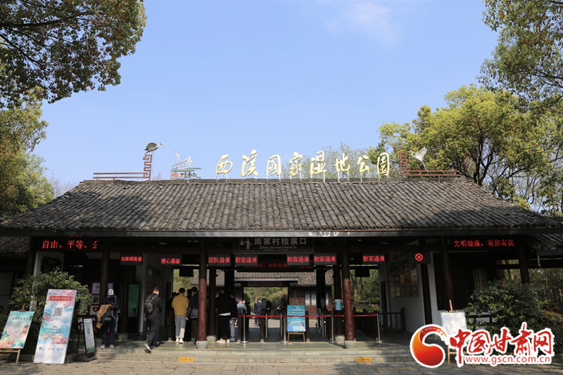 游客進(jìn)入杭州西溪國家濕地公園游覽