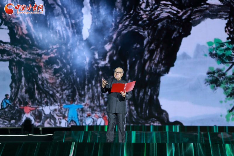 開幕式之后的“水墨關山·槐蔭天下”晚會,以“黃·紅·綠”三色歷史篇章新理念,展現(xiàn)平涼滄桑巨變的歷史發(fā)展新格局。晚會以童謠《大槐樹謠》開場,展現(xiàn)了屹立于崇信山坳中的大槐樹,歷經3200歲風雨,矗立成為民族精神的象征。非遺表演唱《弦子腔》+《崇信民歌》展現(xiàn)了崇信人民延續(xù)農業(yè)生態(tài)精神,演繹對真善美的追求。還有書畫頻道的書畫家們現(xiàn)場通力合作,激情創(chuàng)作,專門為崇信人民創(chuàng)作了兩幅丈二畫作——《雄峙千秋》《公劉與崇信》,為本場晚會添色添彩。