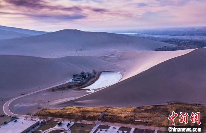 近日,甘肅敦煌發(fā)布了冬春旅游季產(chǎn)品和優(yōu)惠政策引客錯(cuò)峰出游。圖為夕陽西下的鳴沙山月牙泉景色如畫。 王斌銀 攝