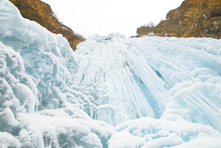 往日飛流直下的山泉瀑布,在冬日里幻化成一排排幾十米寬的銀瀑,從崖壁上垂瀉而下。山谷下,石壁間,清一色的玉白,宛如一座巨大的冰簾,順著崖壁的走勢,或凸出或凹進(jìn),層層疊疊將整個(gè)峽谷環(huán)抱起來。冰瀑、冰簾、冰柱、冰舌,有的相銜相連,有的各自為政,交替排列。如雕似塑,似瑪瑙,像琉璃,晶瑩透亮。冰下暗流涌動(dòng),嘩嘩的水聲,由高到低在冰下輕響。一時(shí)間,仿佛置身于潔白無瑕的童話世界。朋友不住地贊嘆:“這才是真正的冰清玉潔!”