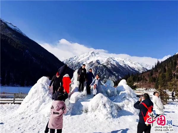 在達古湖和情人灘,攜手親密戀人共同度過了浪漫冬日時光;與朋友和家人,在洛格斯神山腳下,許下了新年最美好的期許;再去山腳逗弄藏酋猴,親人又可愛,讓不少游客連連喊道:“好可愛的猴子!”
