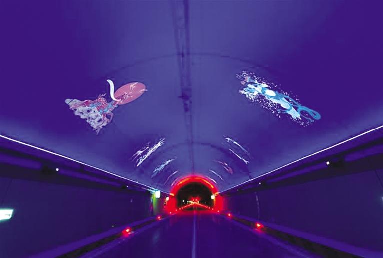景觀(guān)照明系統(tǒng)主體效果充分融合甘肅文化特色,采用“飛天壁畫(huà)”“沙漠駝隊(duì)”等元素,利用洗墻燈襯托底色,投影燈展現(xiàn)景觀(guān)效果,實(shí)現(xiàn)為司乘人員打造人在畫(huà)中游的視覺(jué)感官,有效解決隧道內(nèi)長(zhǎng)時(shí)間駕駛的視覺(jué)疲勞和情緒波動(dòng),提升司乘人員駕駛舒適度。