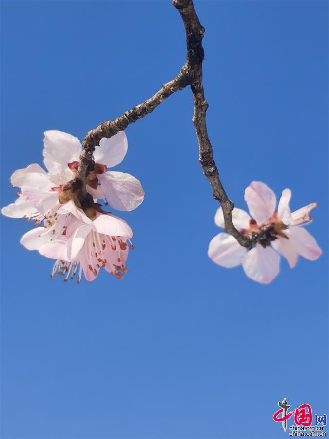敦煌鳴沙山下李廣杏花競(jìng)相開放 美如畫卷 -