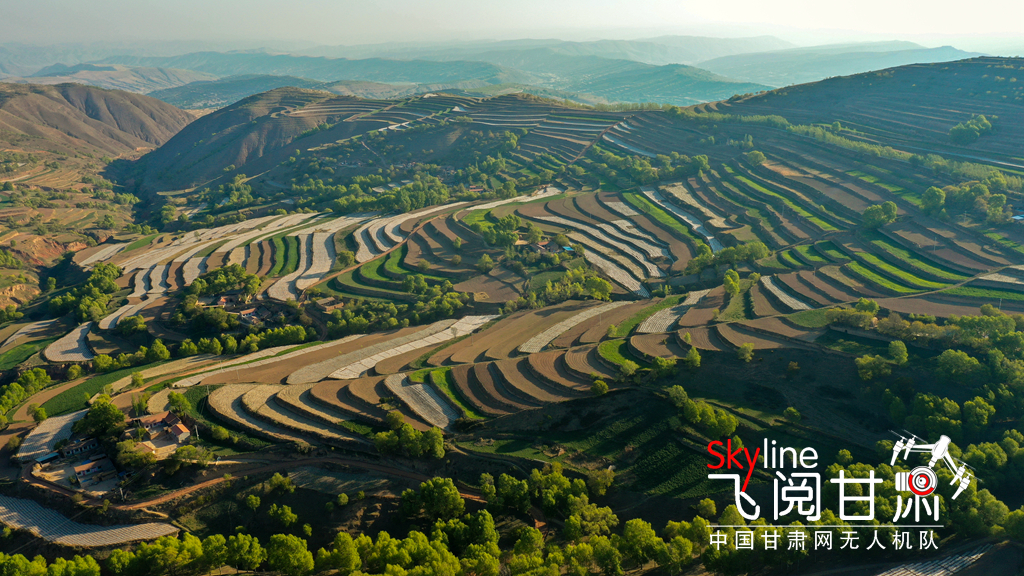 初夏時節(jié),一場雨后的定西市安定區(qū)石泉鄉(xiāng)3000畝標準化農(nóng)田和5萬畝設施梯田,青山環(huán)抱、線條分明,鄉(xiāng)村點綴其間,在不同的光線下呈現(xiàn)出不同色彩,美如畫卷。