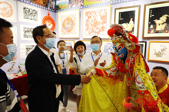 開(kāi)幕式為國(guó)務(wù)院公布的甘肅省第五批15個(gè)國(guó)家級(jí)非遺代表性項(xiàng)目所在市(州)文旅部門(mén)頒發(fā)了牌匾。隨后,全體與會(huì)人員前往甘肅省非遺系統(tǒng)性保護(hù)工作成果展展區(qū)、甘肅省2022年“非遺購(gòu)物節(jié)”活動(dòng)展區(qū)、甘肅省非遺影像展展廳、張掖市非遺工坊傳承人工作室,實(shí)地參觀了解近年來(lái)全省各地非遺系統(tǒng)性保護(hù)工作取得的成績(jī),并與各級(jí)非遺傳承人互動(dòng)交流。
