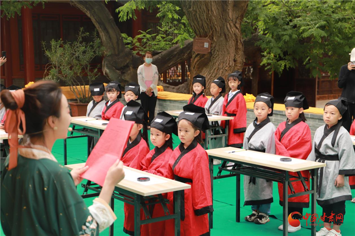 活動(dòng)二,“開(kāi)筆啟蒙 詩(shī)禮少年”開(kāi)筆禮活動(dòng)成功舉辦。孔子曰:“不學(xué)禮,無(wú)以立”,“開(kāi)筆禮”古稱“破蒙”,為人生“四禮”之一,也是少兒開(kāi)始識(shí)字習(xí)禮的一種啟蒙教育形式,寄托了對(duì)孩子成長(zhǎng)的美好企盼。少年智則國(guó)智,少年強(qiáng)則國(guó)強(qiáng),在文廟舉辦“開(kāi)筆禮”,就是為了傳承中華優(yōu)秀傳統(tǒng),增強(qiáng)學(xué)子文化自信,激發(fā)學(xué)習(xí)熱情,為中華民族的偉大復(fù)興刻苦學(xué)習(xí),努力奮斗。