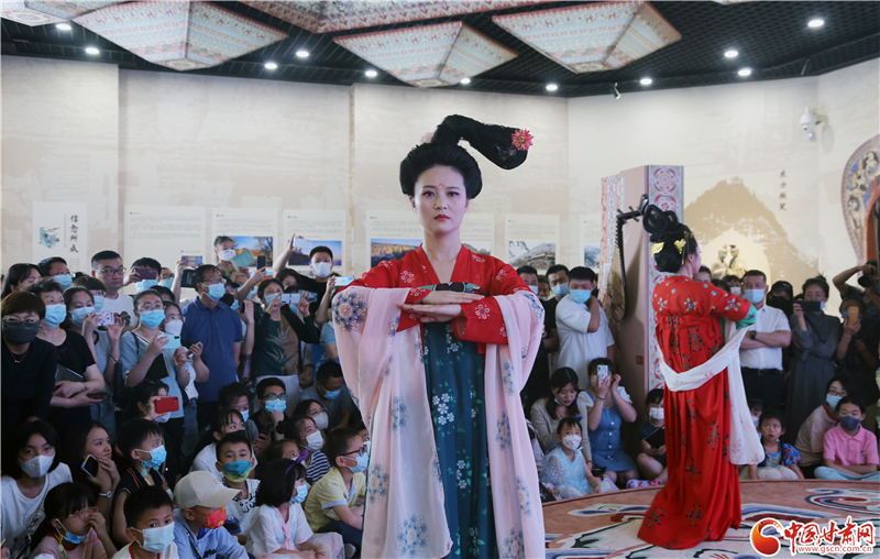 中國甘肅網(wǎng)6月11日訊(本網(wǎng)記者 程健 宋芳科)6月11日上午,值文化和自然遺產(chǎn)日到來之際,敦煌文化研究院在蘭州分院敦煌藝術(shù)館舉辦了“時(shí)代共進(jìn)、人民共享”主題展,通過虛實(shí)融合敦煌石窟體驗(yàn)、敦煌服飾展演、文創(chuàng)產(chǎn)品展示等,向廣大市民群眾全方位呈現(xiàn)了深厚的敦煌文化與莫高窟文化遺產(chǎn)。當(dāng)天的活動(dòng),中國甘肅網(wǎng)全程進(jìn)行了網(wǎng)絡(luò)直播。