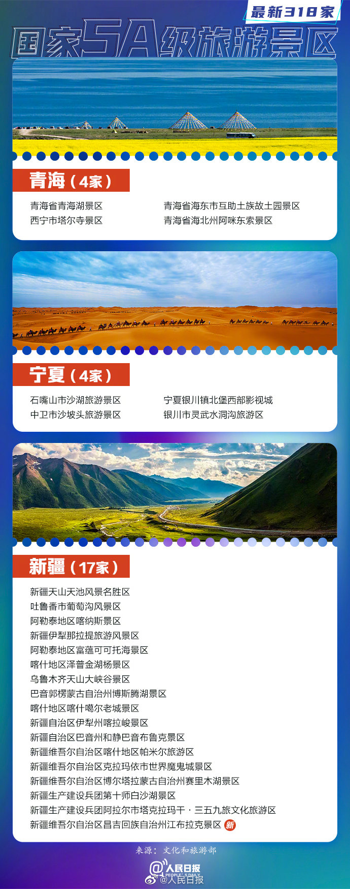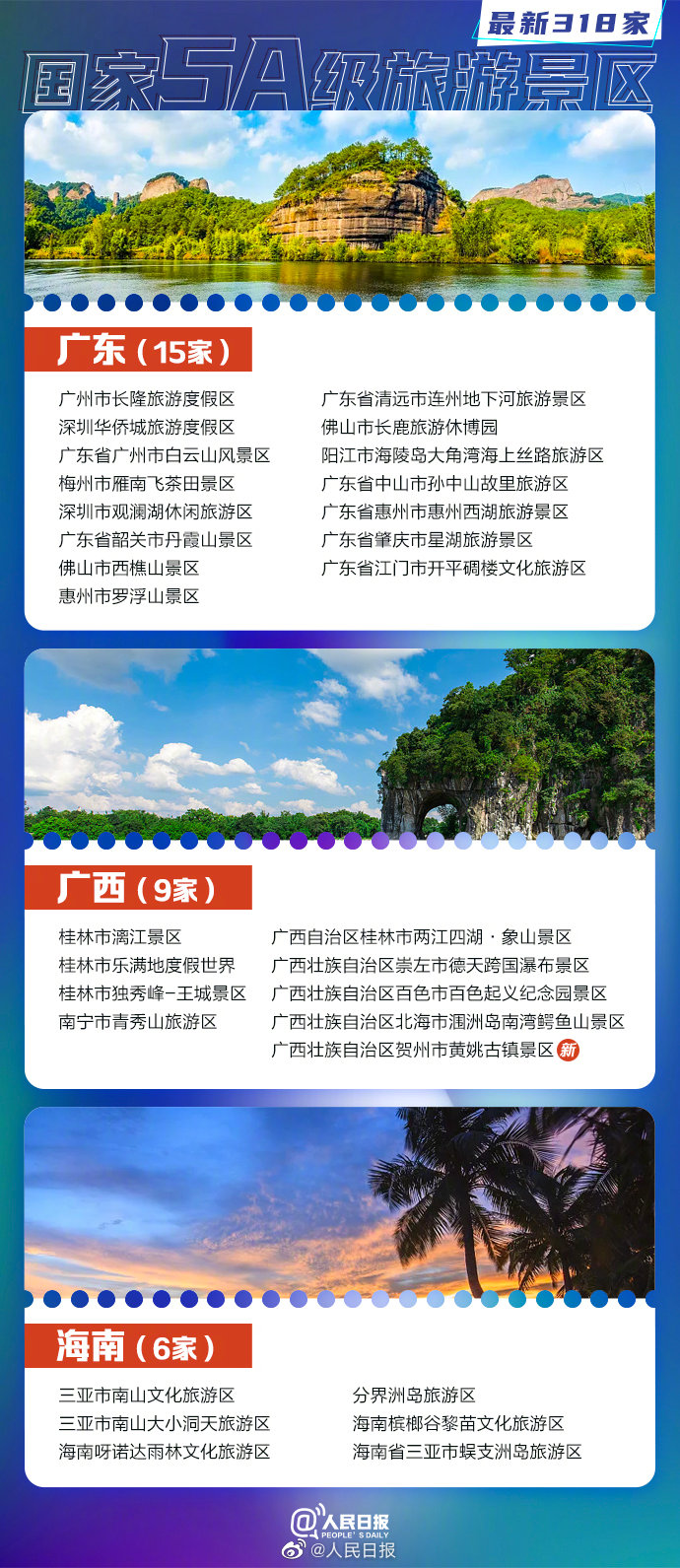 文旅部7月15日正式確定12家景區(qū)為國(guó)家5A級(jí)旅游景區(qū)。截至目前,全國(guó)共有318家5A景區(qū)。收好這份最新5A景區(qū)全名單↓↓