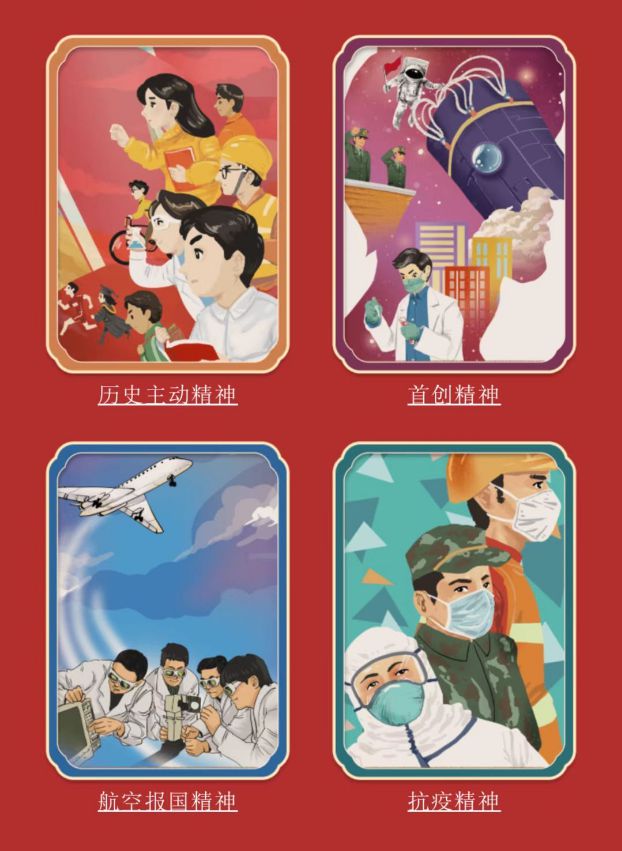 《中國(guó)精神》是中華文化的現(xiàn)代表達(dá),記錄并講述了幾代中國(guó)人拼搏和堅(jiān)守的現(xiàn)實(shí)場(chǎng)景,刻畫(huà)了緊跟時(shí)代發(fā)展而來(lái)的歷史主動(dòng)精神、首創(chuàng)精神、改革精神、航空?qǐng)?bào)國(guó)精神、抗疫精神……