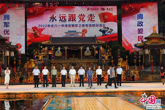 7月31日,陜西華清宮景區(qū)舉辦“永遠跟黨走·2022年慶八一華清宮擁軍之夜專場慰問演出”。