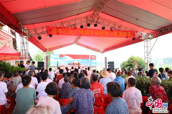 此次品桃節(jié)以“喜迎二十大 奮進(jìn)新征程•‘豐’收黃桃 ‘裕’您共享”為主題,旨在宣傳豐裕村黃桃基地產(chǎn)業(yè)發(fā)展成果,拓寬黃桃銷售渠道,樹立產(chǎn)業(yè)品牌,實現(xiàn)產(chǎn)業(yè)強(qiáng)村、增收富民的目標(biāo)。