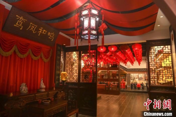 圖為博物館內(nèi)布置的中式傳統(tǒng)風(fēng)格新婚洞房?!⒘?nbsp;攝