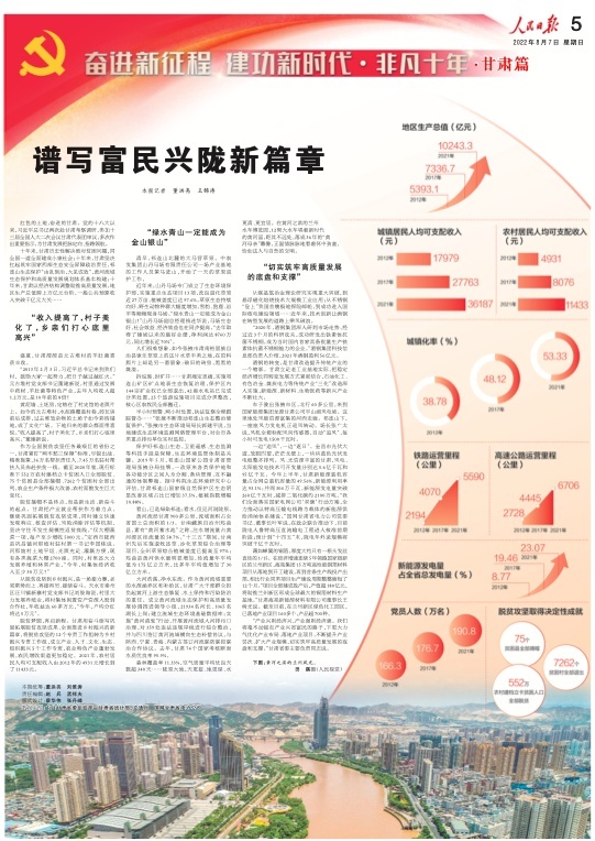 8月7日,人民日報刊發(fā)“奮進新征程 建功新時代·非凡十年”甘肅篇,重磅推出兩塊整版,聚焦黨的十八大以來,隴原兒女牢記習近平總書記的殷切囑托,踔厲奮發(fā)、銳意進取,埋頭苦干、勇毅前行,加快建設幸福美好新甘肅,不斷開創(chuàng)富民興隴新局面。