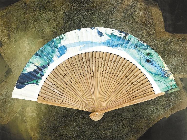 據(jù)劉志剛介紹,漆扇是使用漆藝中的“漂漆”技法,利用了漆不溶于水的特質(zhì),以點(diǎn)、甩、彈、劃等手法,在水面繪出圖案效果。這樣制作出的扇面,都是獨(dú)一無(wú)二的。