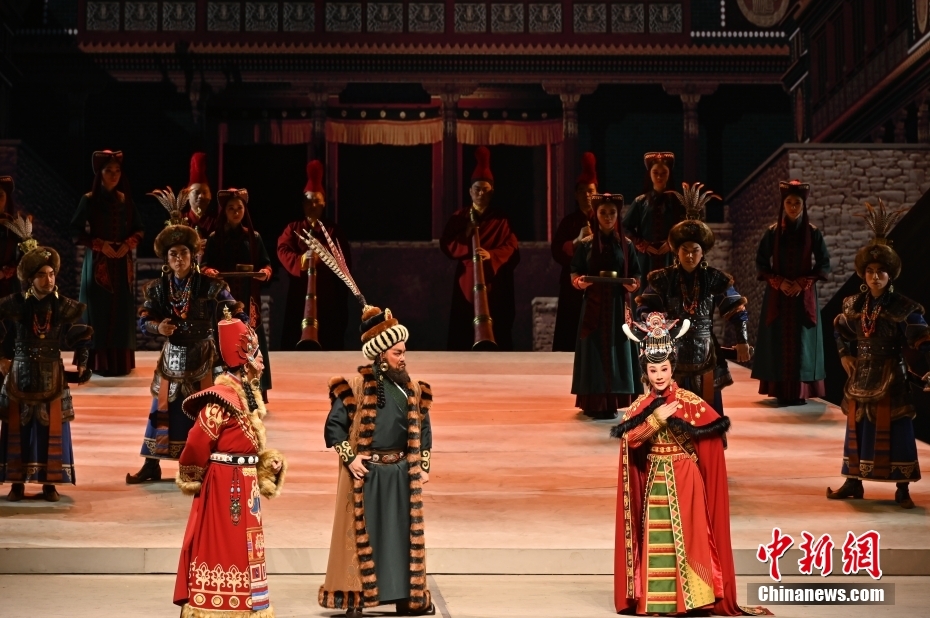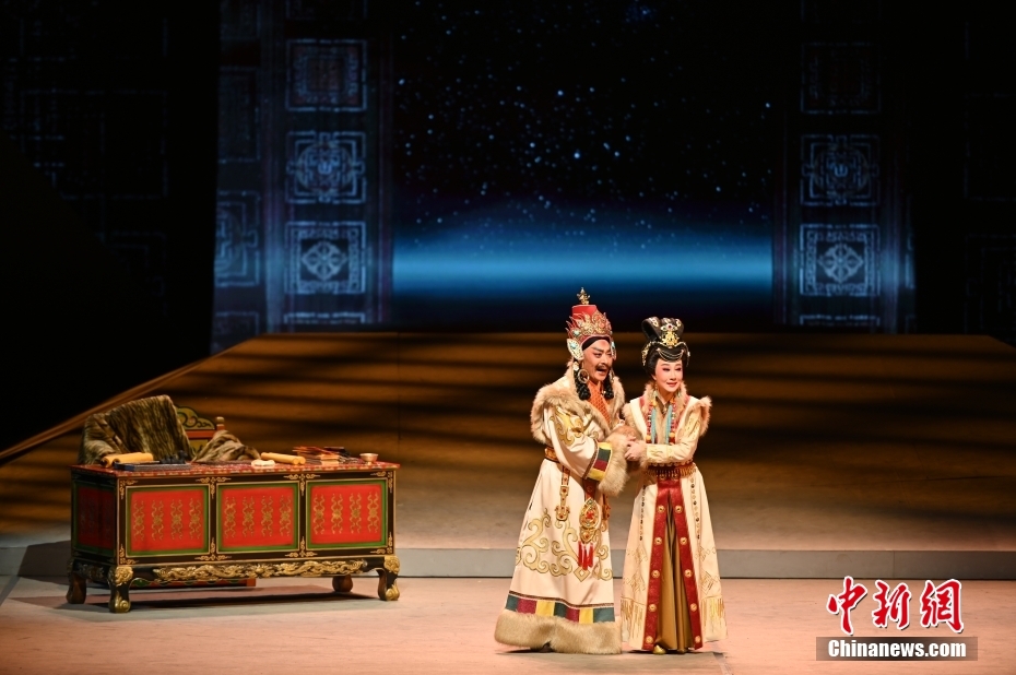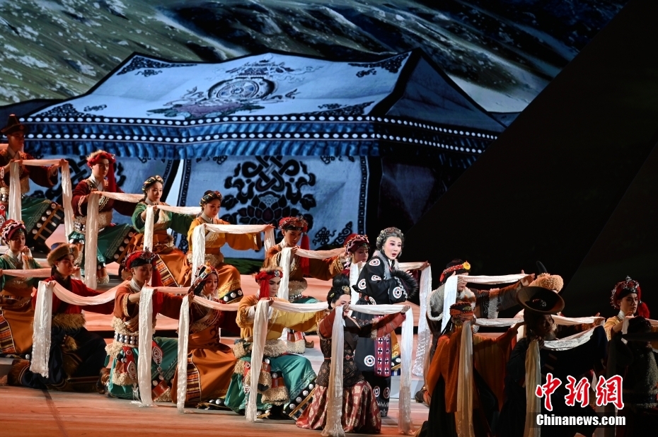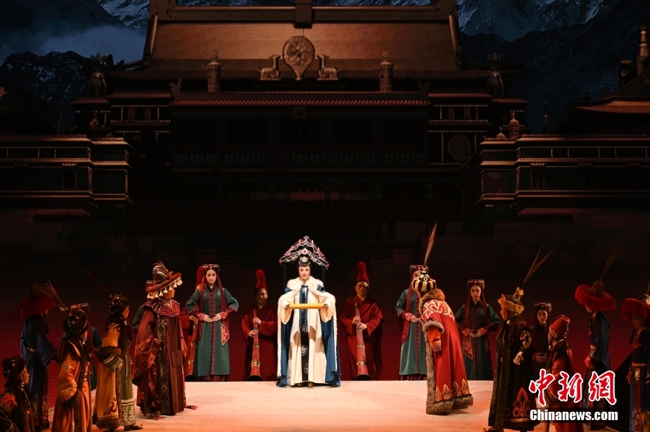 10月11日晚,大型新編歷史粵劇《文成公主》在廣東廣州大劇院首演。該劇以文成公主和親進藏的歷史事件為依據(jù)創(chuàng)作,講述了文成公主堅守吐蕃四十年,促進了吐蕃經濟、文化的發(fā)展,加強了漢藏人民的友好關系。中新社記者 陳楚紅 攝