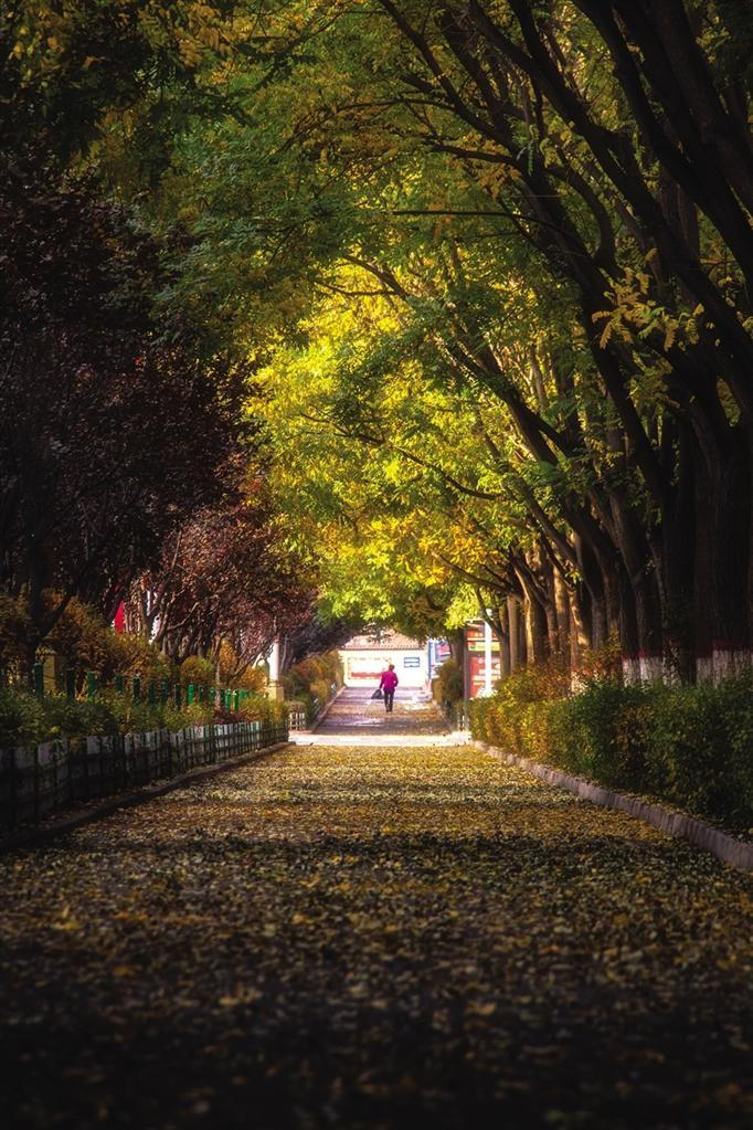 中國甘肅網(wǎng)11月4日訊 據(jù)蘭州晚報報道(通訊員 陳立穩(wěn) 記者 張鵬偉 攝)晚秋,藏著秋季里最美的景色。在這個如童話般的深秋季節(jié)里,皋蘭縣街道兩旁的國槐變成了金黃色,人民廣場的楓葉在霜的洗禮下漸漸轉黃,再由黃變紅。梧桐、銀杏的落葉交織,各種菊花競相綻放,綠、黃、紅、紫交織在一起,組成了皋蘭最美的秋色。